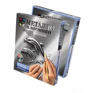 Набор 'Металлопластика' - прекрасная возможность для Вас и Вашего ребенка проявить свою изобретательность и мастерство в создании удивительных изображений на мягком металле. Используя несложную технику обработки тонкого металла, Вы сможете изготовить необычное панно, которое станет чудесным подарком или украшением Вашего интерьера. Вы сможете создавать объемные изображения в металле, обрабатывая мягкую и пластичную поверхность металлического листа с помощью специального набора деревянных стеков, а подробная инструкция внутри набора сделает процесс простым и понятным. Проявите свои навыки и умение! Металлопластика - это древняя техника создания рельефных изображений на металле. Она отличается тем, что производится исключительно на тонких листах металла толщиной до 0,5 мм путем выдавливания контура рисунка специальными инструментами, благодаря которым образуются плавные деформации металла. Более толстый лист не поддается подобной обработке, а лист тоньше 0,2 мм может порваться. Металлопластика - один из старейших видов художественной обработки металлов. С давних времен металлопластика использовалась для украшения мебели, изготовления различных элементов декора или в качестве самостоятельного произведения искусства. Работа с набором развивает навыки, ловкость и терпение Вашего ребенка, а также дает прекрасную возможность Вам и Вашему ребенку творчески взаимодействовать друг с другом в процессе изготовления оригинального предмета декора.