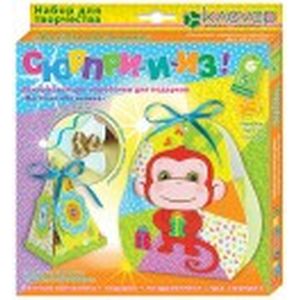 Все картонные детали коробочек готовы, - их только нужно вынуть из основы и склеить; бумажные детали несложных форм - их легко вырезать и наклеить на детали коробочек с помощью двусторонней клеящейся ленты вместо клея. Бант из ленты скрепит стороны коробочки и украсит её макушку - работа над набором будет приятна и вам, и ребёнку.
