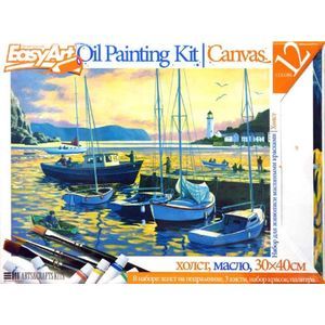 В наборе: деревянный подрамник с холстом (30х40 см), 3 кисти, набор масляных красок (12 цветов), пластиковая палитра, инструкция.