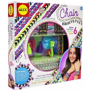 В наборе: 6 металлических цепочек черного и золотого цветов. Нитки мулине 8 цветов, 8 атласных разноцветных шнуров, 3 подвески, 3 кисточки, 8 бусин, соединительные колечки, крючок-держатель и простые инструкции.