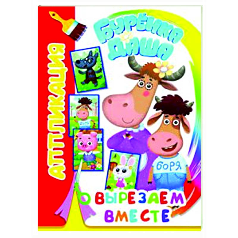 Книжка-аппликация для малышей 3-6 лет , в мягкой обложке,14 х 20 см, 14 стр., 4 картинки-аппликацииС персонажами и кадрами из уникального мультипликационного караоке-проекта 'Бурёнка Даша'