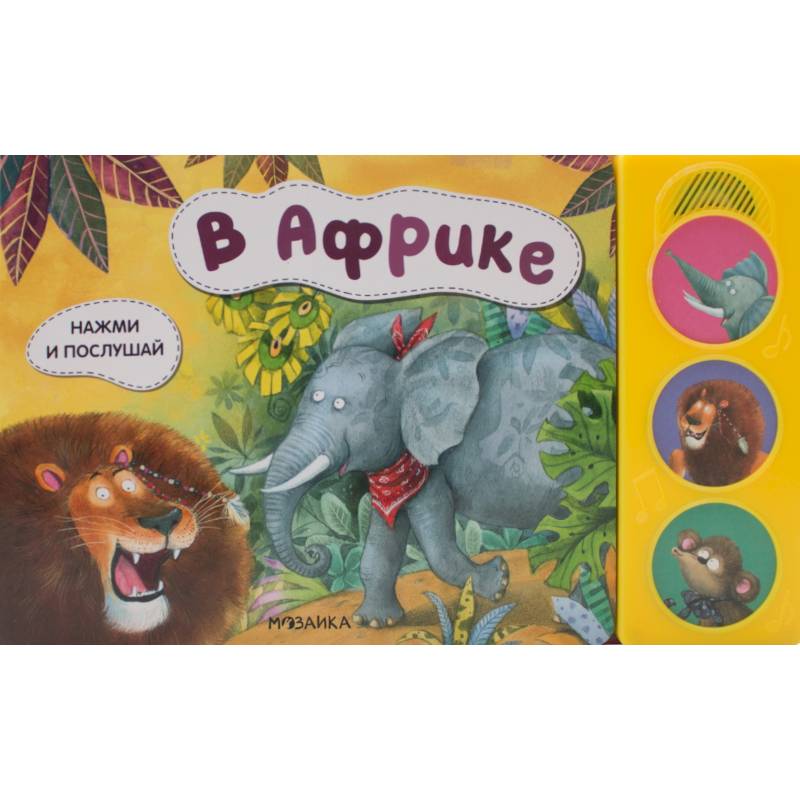 Ту-ру-ру-ру! Р-р-р-р! Ух-у! Звуковые книги любят все малыши — так интересно нажимать на кнопки и слушать разные звуки. Книга «В Африке» из серии «Нажми и послушай» с выразительными иллюстрациями Любови Ерёминой и веселыми стихами расскажет о животных Африки. Малыш отправится на водопой вместе с львом, слоном и обезьянкой. В книге 3 звуковые кнопки, нажимая на которые, можно услышать звуки животных. Звук можно выключить повторным нажатием на кнопку.