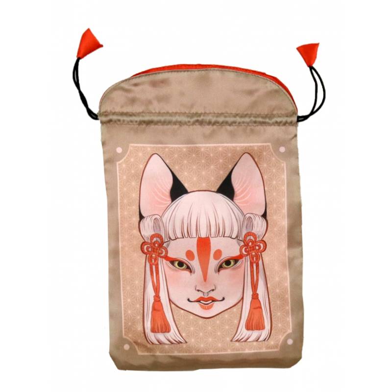Эта драгоценная и элегантная атласная сумка, украшенная изображением шкатулки Таро Ёкай, является идеальным решением, чтобы носить с собой любимую колоду Таро и всегда быть готовым к чтению карт! Маска кицунэ на передней части сумки придает этому уникальному изделию нотку стиля и очарования.