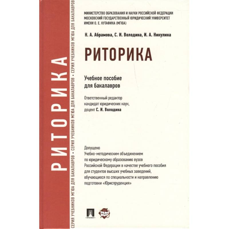 Учебное пособие полностью соответствует новым стандартам высшего образования по направлению 'Юриспруденция' (квалификация 'бакалавр') и подготовлено преподавательским коллективом МГЮА им. О. Е. Кутафина, который разрабатывал программу учебной дисциплины 'Риторика'. Предназначено для студентов юридических факультетов и вузов, обучающихся по программам бакалавриата, а также всех интересующихся теоретическими и прикладными аспектами риторики.