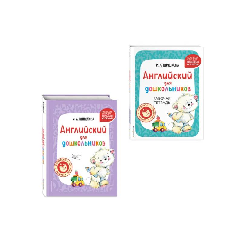 В комплект по английскому языку автора И. А. Шишковой входят книги «Английский для дошкольников (+ аудиозапись по QR-коду)» и «Английский для дошкольников. Рабочая тетрадь».