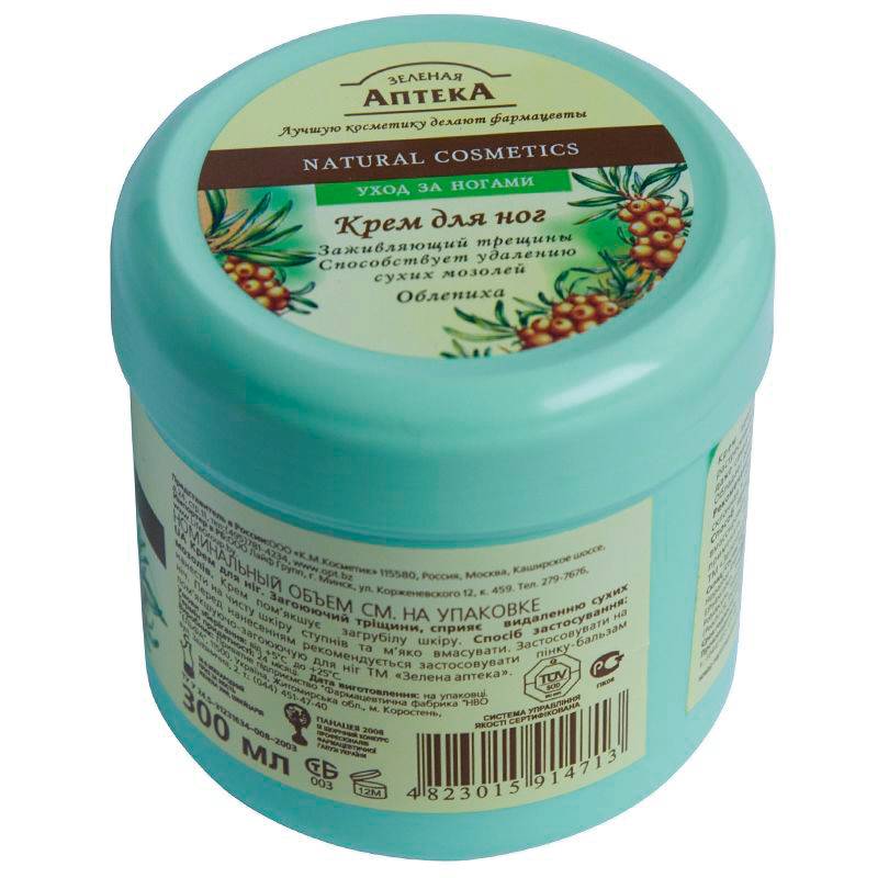 —Крем для ног 'Заживляющий трещины. Способствует удалению сухих мозолей'. С Облепихой.300мл