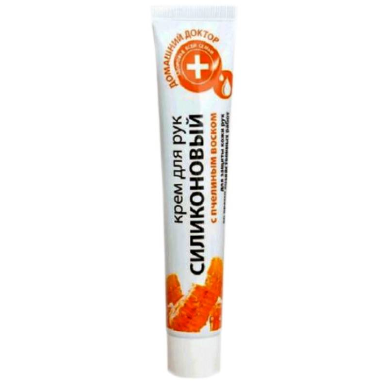 Силиконовый крем применяется для защиты кожи рук от вредного воздействия компонентов бытовой химии при выполнении ремонтных и строительных работ, а также хозяйственных работ по дому, в саду, огороде, на даче. Содержащиеся в составе силикон и пчелиный воск образуют на коже защитную отталкивающую пленку, предотвращают обезвоживание кожи.